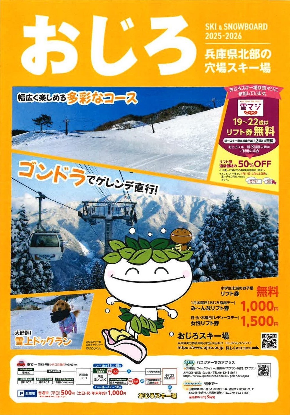 おじろスキー場大人【土日祝】リフト1日券+お食事券5,800円 ⇒ 5,000円